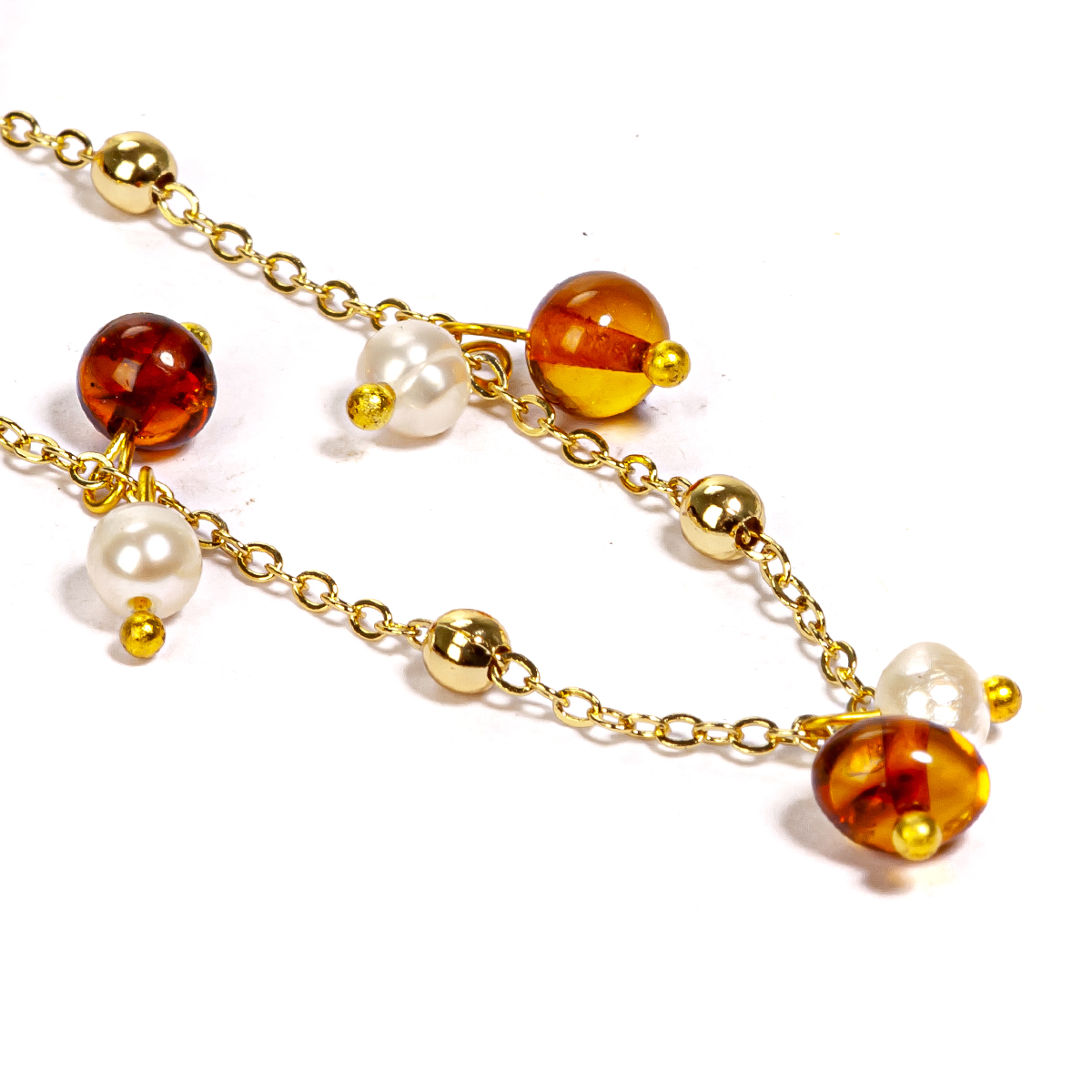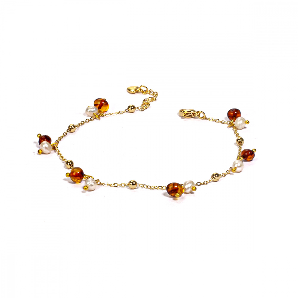 Браслет-Анклет "Фантазия" из Янтаря и жемчуга
