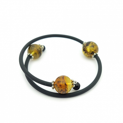 Браслеты кожаные и каучуковые с янтарем