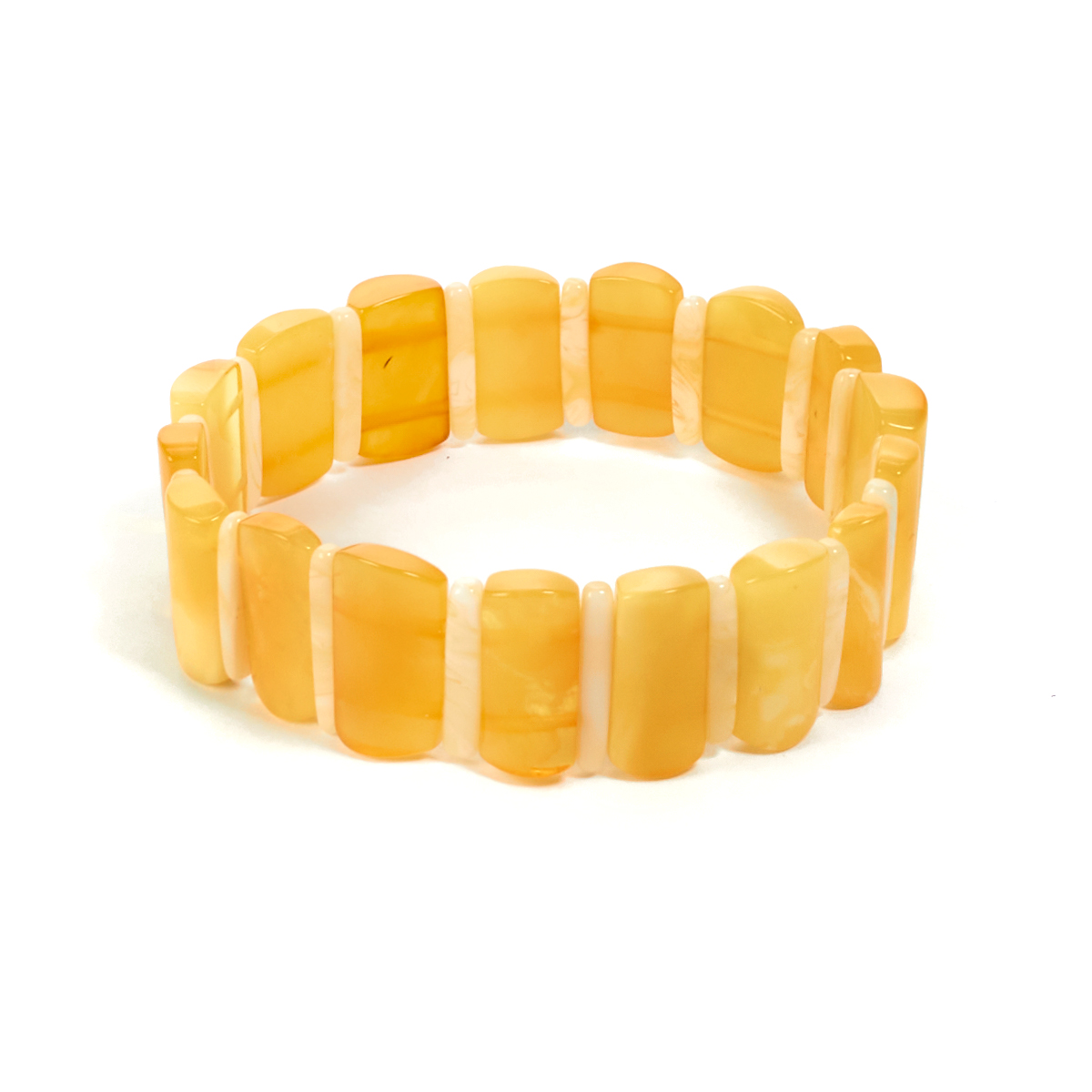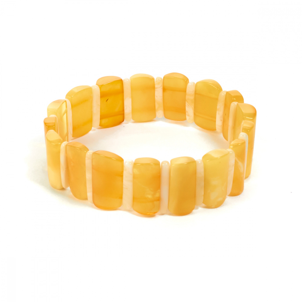 Браслет из Янтаря из ровных пластин с закрулёнными краями, между ними продольные вставки