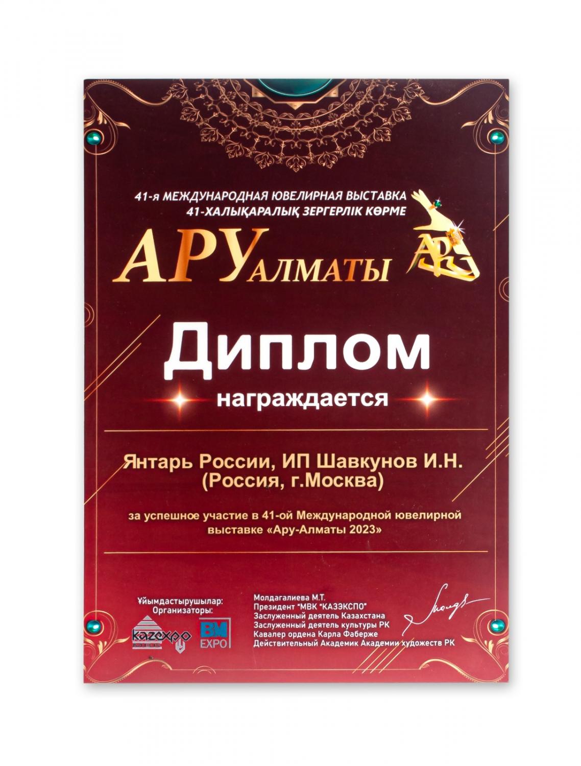 Диплом за успешное участие в 41-ой Международной ювелирной выставке "Ару-Алматы 2023"