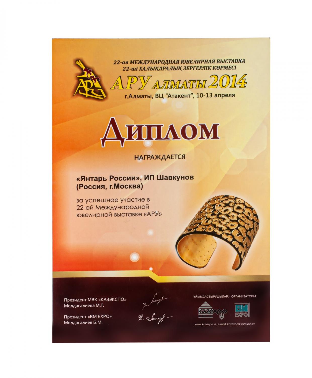 Диплом за успешное участие в 11-ой Международной ювелирной выставке "Ару-Алматы 2013"