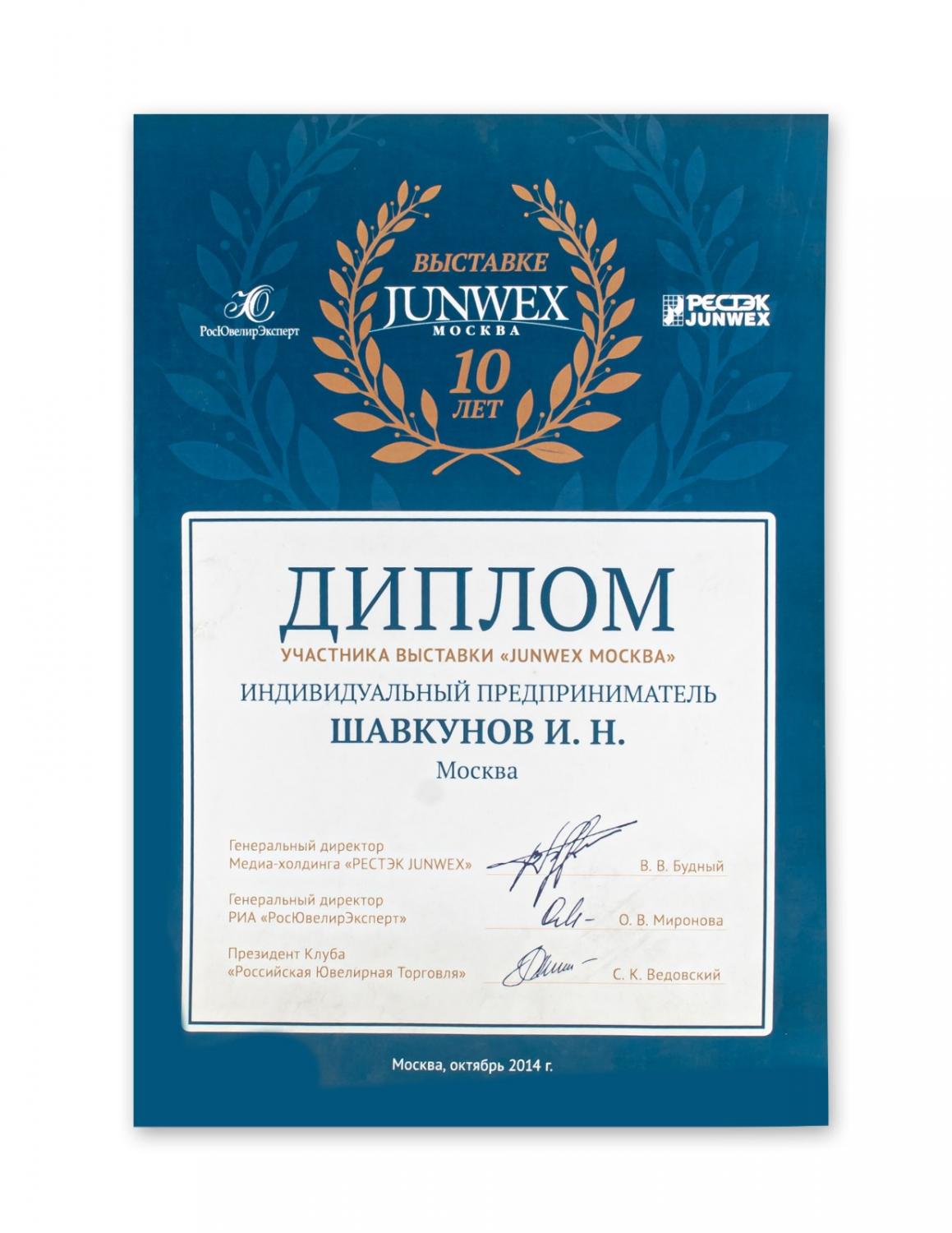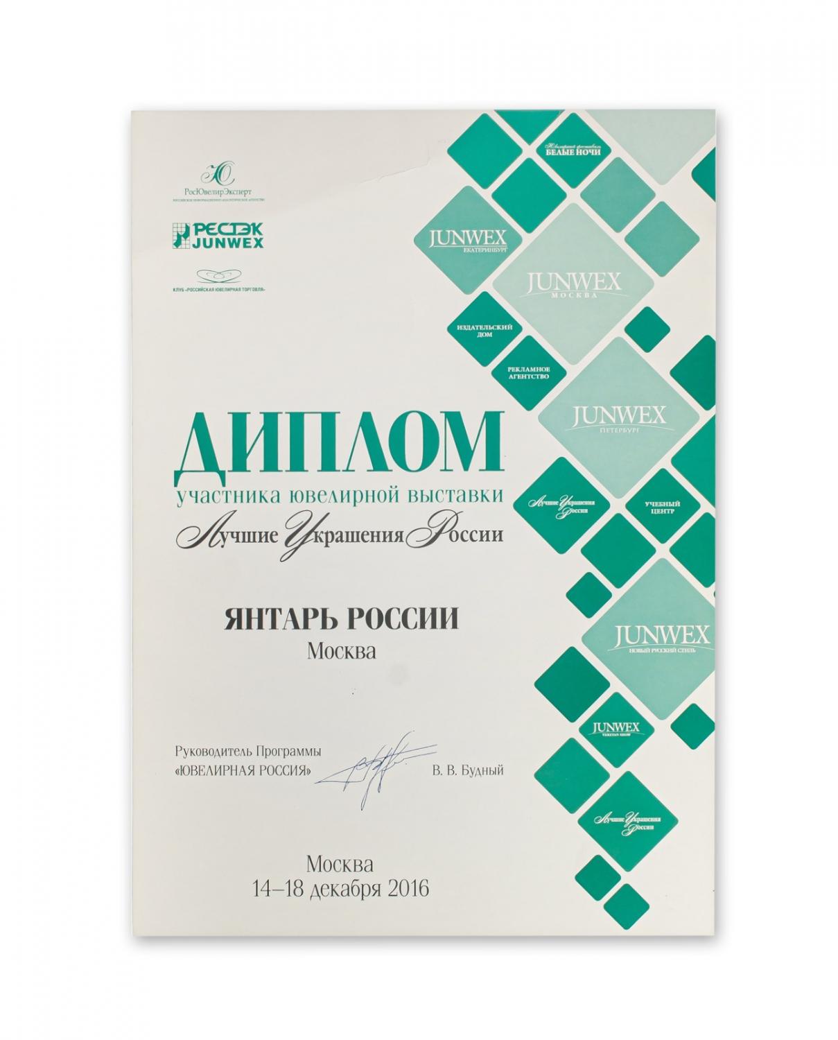 Диплом участника ювелирной выставки "Лучшие украшения России"