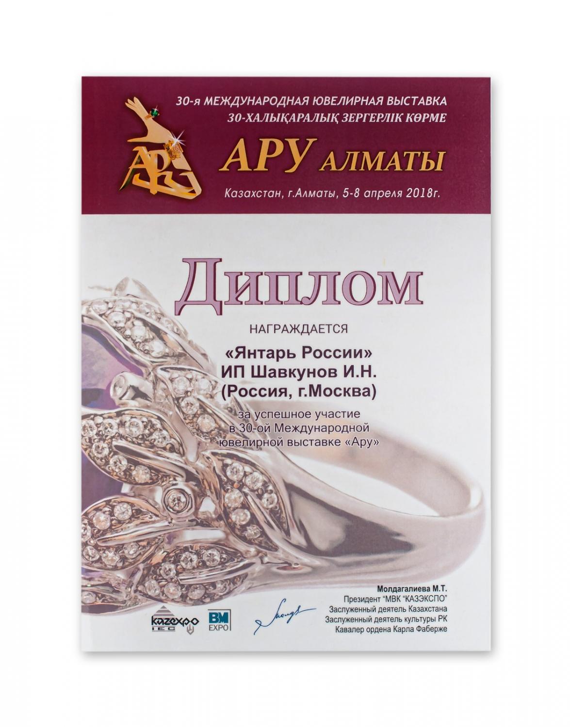 Диплом за успешное участие в 40-ой Международной ювелирной выставке "Ару-Алматы 2022"